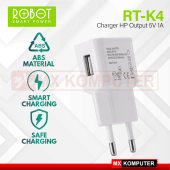 Rp 80.000Charge Robot RT-K4 Spesifikasi Masukan 100-240V, 50-60HZ Output 5V / 1A , Bahan Housing PC + ABS pecahan peluru stainless steel berlapis nikel Suhu operasi 0-40 ° Kelembaban bekerja 35-85% RH