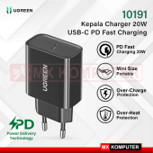 AD HP UG UGREEN 10191 Charger USB-C 20W 3A PD QC Fast Charging Spesifikasi: – Input: 100-240V~50/60Hz 500mA Max – Output : 5V/3A, 9V/2A, 12V/1.5A – Total output power : 20W Max – Port USB TYPE C – Super Speed Charge For IP – Compatible with : PD3.0, PD2.0, QC4.0, QC3.0, QC2.0