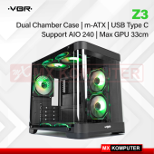 Rp 610.000VBR Z3 Dual Chamber Tempered Glass M-ATX Gaming Case “Tidak Termasuk Fan” Specification Compact Curve Dual-Chamber Design m-atx USB TYPE-C SUPP AIO 240MM VGA UP TO 330MM USB 3,0 & TYPE C READY UP TO 7 FANS