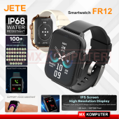 Specification Smart Watch JETE-FR12 : • Screen Size: 1.85″ HD • Screen Resolution: 240*286 Pixels • Battery Capacity : 260mAh • BT Range: 8-10m • Working Time : 3-6 Day • Standby Time: 10-20 Days • Water Resistance: IP68 • Body Material: Zine Alloy Middle Frame • Band Material: Silicone Strap • Machine Weight: 37g… selengkapnya