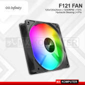 Rp 40.000INFINITY FAN F121 Specifications : Model: RGB Fan Dimension: 120x120x25cm Application: Computer Case FAN Speed [RPM]: 1200 (-+) 10% Fan Airflow: 32RPM Bearing Type: Hydraulic Bearing Fan Life Expectancy: 40.000 Hours Voltage: 12V DC Fan Noise: Level 18dB [A] Connector Fan: 4 Pin