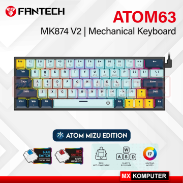 Fantech Atom63 MK874V2 Mizu Edition Mechanical Gaming Keyboard RGB 60% – Sky Blue, Switch Blue