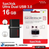 Flashdisk Sandisk 16GB M3.0 DUAL DRIVE USB 3.0 OTG – konektor Micro-USB di 1 sisi dan USB 3.0 di sisi lainnya – kinerja high-speed USB 3.0 hingga 130MB/s untuk memindahkan file lebih cepat antara drive dan ke komputer – kompatibel dengan HP android yang support OTG (bisa dicek di web SanDisk untuk daftarnya)