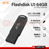 *Harga Hubungi CSFLASHDISK JETE U1 Kapasitas : 64GB Read/Write : Read 15MB / WRITE 6MB Kompatibilitas : Sebagian besar perangkat Android. USB : 2.0 compatible 3.0 Bahan : High Durability Plastic Fitur : * Hanging Buckle Desain * Drive berkapasitas tinggi menampung file media favorit Anda * Simpan dan pindah file lebih cepat