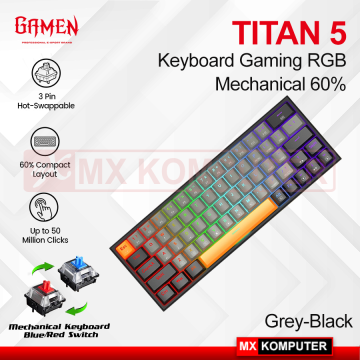 GAMEN Keyboard Gaming Mechanical 60% Layout Titan 5 RGB Full Light Titan V – Grey-Black Blue Switch