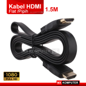 Kabel HDMI 1.5m Flat / Pipih Panjang Kabel 1.5 meter Konektor HDMI: pin 19 (lebar 1.5cm) Versi: 1.4 (3 D) Warna Kabel: Hitam Lebar Kabel: 13mm Bentuk Kabel: Gepeng / Pipih / Datar