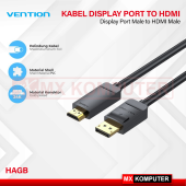 Rp 30.000Kabel VENTION HAGB Features : 4K@30Hz Support Audio and Video in sync Specifications : Connector Interface : DisplayPort (DP) Male to HDMI Male Connector Material : Gold-plated Conductor : Tinned Copper Chipset : TI149 Shell : PVC Shielding : Aluminium Foil + Ground Wire + Braid