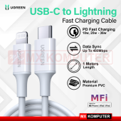 Rp 650.000KBL TPC-L UG 1 Specification : – Merek :UGREEN – Model : 10493 – Material :Premium PVC+ABS – Current :3A, 36W – Panjang :1M – Transmission rate :480Mbps – Support :Fast Charging, Charging &Data Transmission
