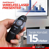 Jangkauan maksimal 15 meter. Selain itu, indikator baterai membantumu membuat presentasi biasa menjadi luar biasa.