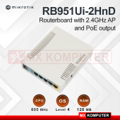 Rp 110.000NET MIK RB951 2.4Ghz 1000mW AP, 5xEthernet, PoE output on port 5, USB, 600MHz CPU, 128MB RAM. ” CPU: Atheros AR9344 600Mhz ” (5) 10/100 Ethernet Ports ” (1) USB 2.0 Port ” Memory: 128MB DDR2 onboard memory ” Power In: PoE: 8-30V DC on Ether 1 (non 802.3af). Jack: 8-30V DC ” Power… selengkapnya