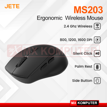 Mouse wireless JETE MS203 memberikan kenyamanan dalam bekerja menggunakan tipe baterai AA. Dengan fitur Silent Click, DPI yang bisa disesuaikan, dan Palm Rest Area luas, rasakan sensasi klik lebih baik dalam waktu lama saat bekerja.