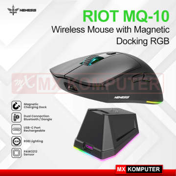 NYK Nemesis Riot MQ10 / MQ-10 Mouse Wireless Dual Mode Rechargeable Battery with Docking Charging – Hitam