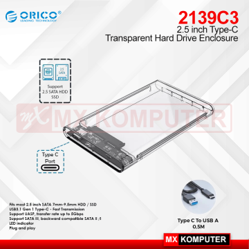 ORICO 2139C3 2.5 inch Type-C Transparent Hard Drive Enclosure