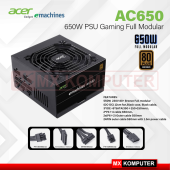 Rp 570.000650W Real, 80 PLUS BRONZE, Full Modular, DC-DC, 12cm fan, black case, black cable, 1.5m power cord, with Acer gadget “emachines” logo and color box, Connector and cable length: 24pins (550mm), 2x P8(4+4)(2x 650mm), 2x P6+2 (2x 550mm), 5x SATA&3x IDE (500+150mm)