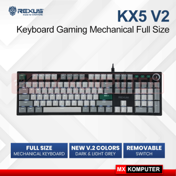 Rexus Keyboard Gaming Heroic KX5 V2 / KX-5 V2 Full Size RGB Led With Knob – Light Grey, Blue Switch