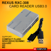 Rp 50.000Card Reader Rexus RX-C631 Kompatibel sepenuhnya dengan spesifikasi USB V.2.0 Daya USB tidak memerlukan tenaga eksternal Lampu LED biru menunjukkan indicator daya dan lintas data Kompatibel dengan SDHC baru / SDXC standar