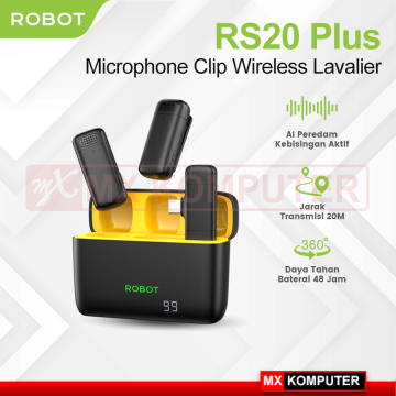ROBOT Microphone Clip Wireless Lavalier with AI 20m for Audio/Video/Recording/Live/Broadcast/Gaming iOS Android Microphone Nirkabel RS20 Plus Original