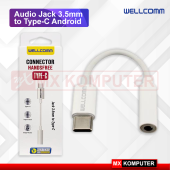 Rp 40.000Merk : Wellcomm Model : Type C to Audio Jack Plug : 3.5mm Kompatibel for : Android Warna : Putih
