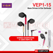 Earphone V-Gen VEP1-15 Jack 3.5mm L Bass Driven in Ear Earbuds On-Off Key Function : Click 1x : On/Off (for phone call) Stop/Play (for music) Click 2x : Next (for music) Click 3x : Previous (for music)