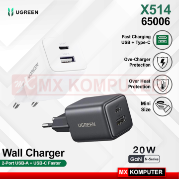 UGREEN X514 Charger Adapter Dual Port GaN N-Series USB-C + USB-A 20W PD Fast Charging